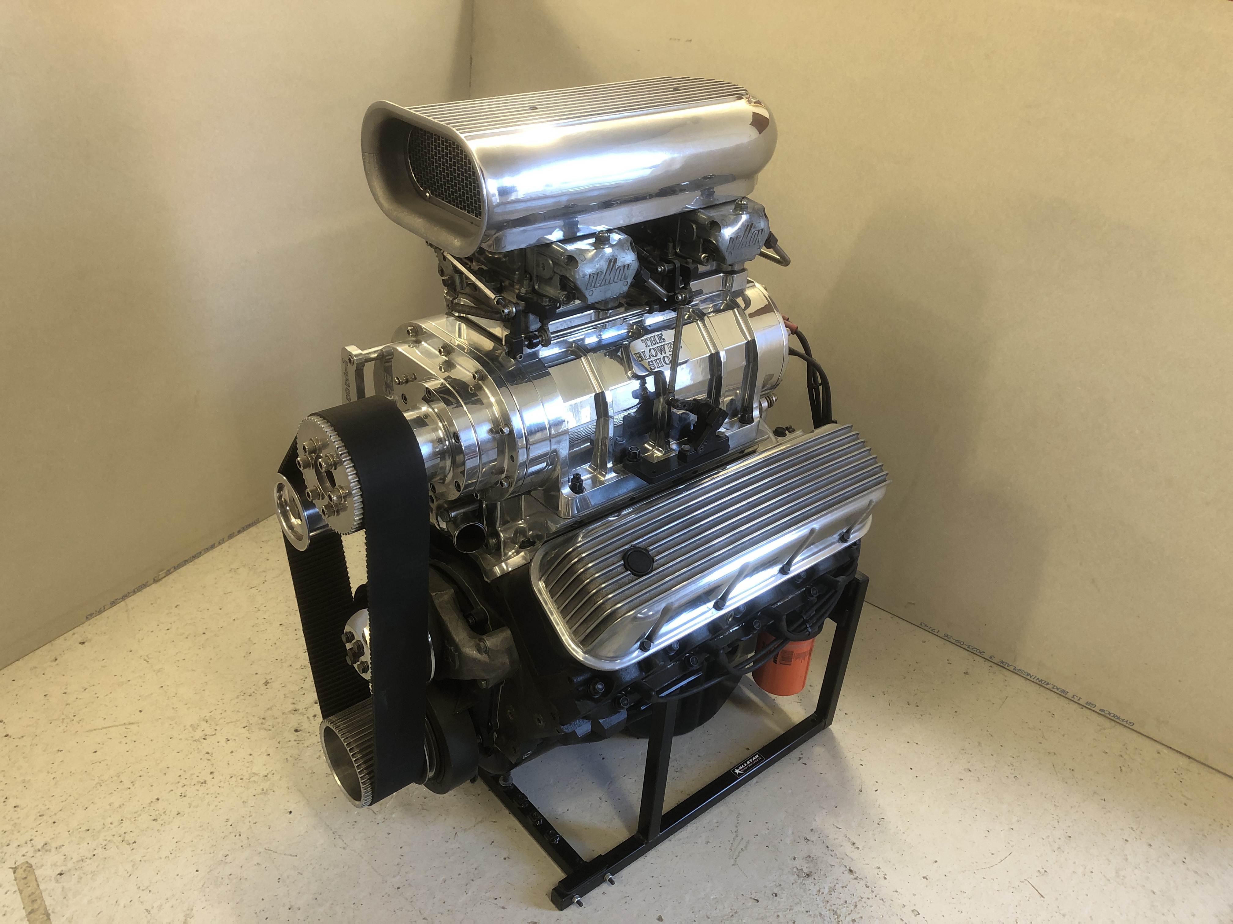 Chev 688 5 tum Dart Taitan alu block 4.675 borr, Brodix Eike 5 tum toppar Full Portade med 2.52, 1.88 titan ventiler, Bryant Billet Vevaxel 5.0 slag, Bill Miller stakar, Venolia kolvar, Jesel Belt drive med 1.0 uppflyttad kamaxel, Jesel lyftare, Jesel Vipparmar, Jesel Fördelare, Moroso Crank trigger och 4 stegs Torrsump, Nål lagrad Stor lob Kamaxel, Chuck Naytten förgasare, 2 NOS fogger system, Aeromtive regulatorer, CVR el vatten pump, Custom headers, motorblöja extra kamaxel, kolvar, foder m.m.