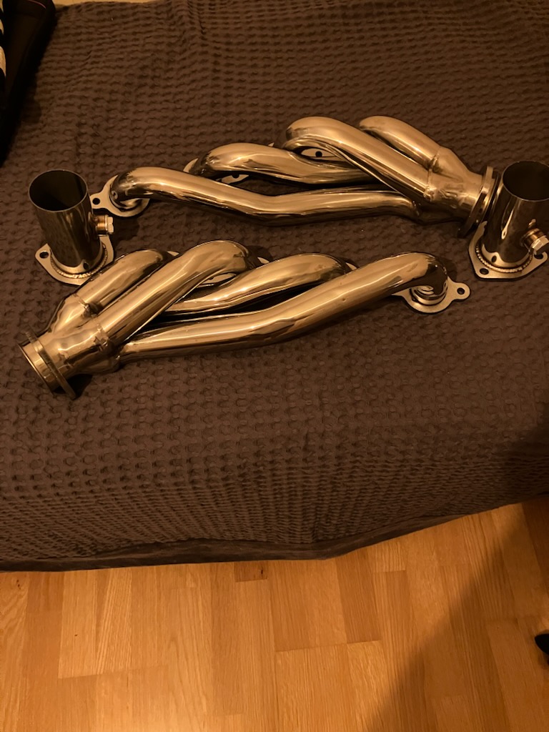 Nya Rostfria korta headers till LS motorer, ca 1–7/8”diameter. Passar bra som turbo grenrör, reducers och rostfria bultar och packningar ingår. 2500kr