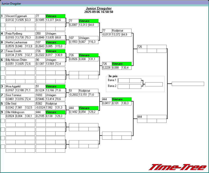 Kvalresultat för Junior Dragster